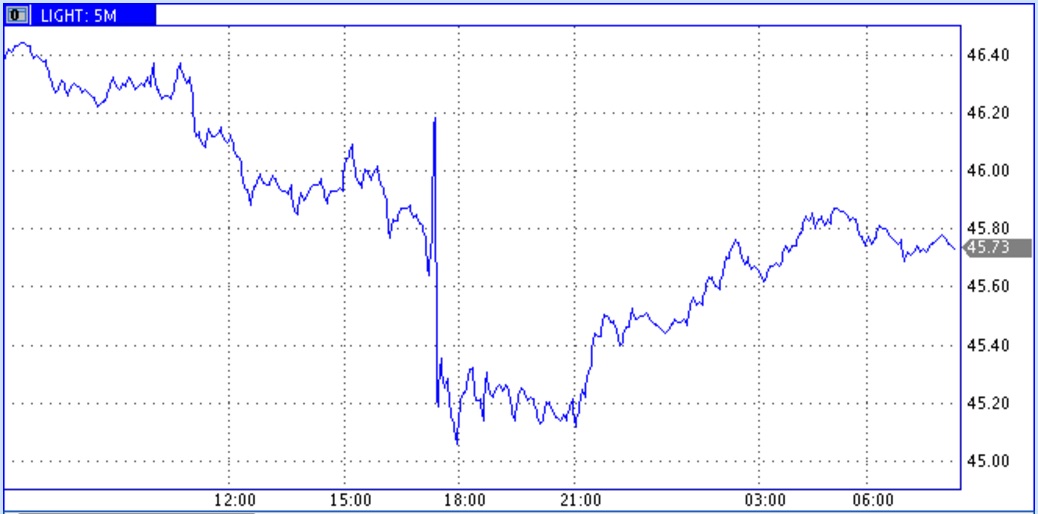 Цены нефти впечатлились таким сильным подскоком запасов и показали провал более чем на 2%. На снижение цены работали также известия о небольшом росте добычи в США. Среднесрочно рост добычи заслуживает едва ли не меньшего внимания. После столь длительного роста буровой активности консолидация уровней добычи теперь все более грозит переходом на новый тренд теперь уже роста добычи. Тем не менее, после выхода данных рынок праздновал слом понижательного тренда объема запасов, а цены нефти устанавливали новые минимумы.