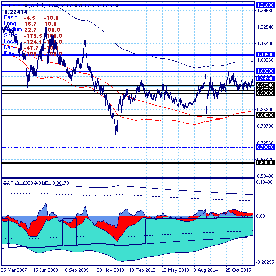 Общая характеристика ситуации. Рынок находится в нейтральном положении, суммарный тренд остается нисходящим и услился по весовым коэффициентам до баллов. Основной и долгосрочный тренды остаются в фазе боковой коррекции по встречным направлениям. Среднесрочный - восходящий, но "бычья ловушка" сработала и рынок после прорыва локальной поддержки 0.9881 прорвал краткосрочную поддержку на уровне 0.9724, открывая для тестирования группу среднесрочных целей на уровнях поддержки 0.9520 и 0.9380.