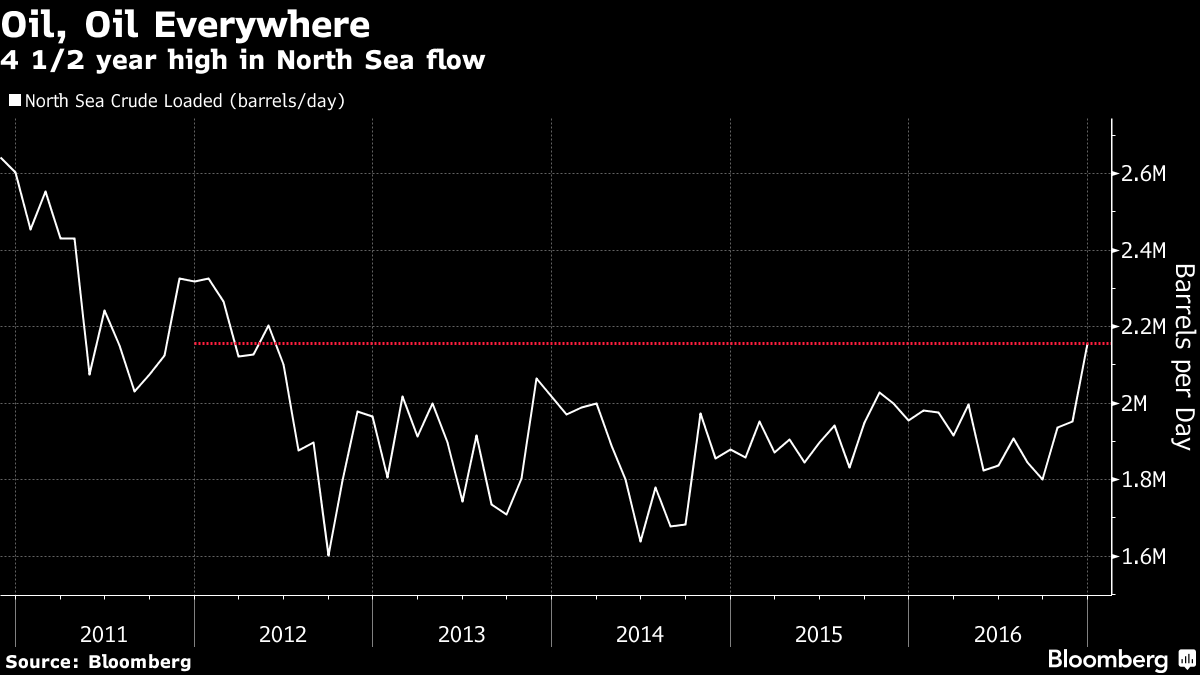 Североморские производители находятся в длинном списке поставщиков, наращивающих добычу, тогда как ОПЕК пытается избавиться от излишек. Давление на картель растет, так как даже входящие в него страны добывают как никогда много нефти, тогда как страны за пределами группы, включая Бразилию, Казахстан, Канаду и Россию добывают исторически высокое количество нефти из новых месторождений. В Tankers International заявляют, что на данный момент 5-10 кораблей были зафрахтованы для хранения нефти около Сингапура. Ливия поставляла наибольшее количество нефти с конца 2014 года в октябре, тогда как министр нефти Нигерии заявил о том, что они выкачивают более 2 млн. баррелей в день впервые с начала года. Это в дополнение к новым поставкам из Казахстана и российского максимума по добыче со времен СССР.