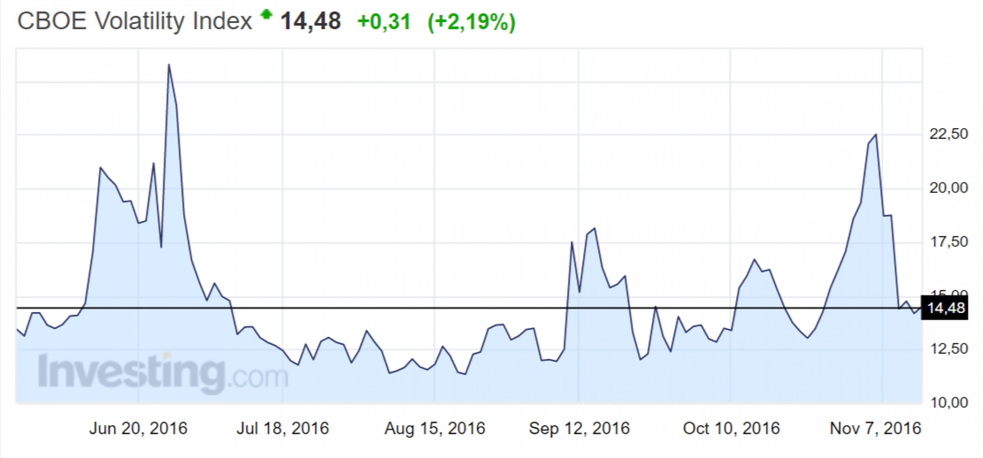 Эти всплески указывают на замешательство инвесторов, которые с трудом переваривают преподнесенный им сюрприз. Таким же волатильным был фондовый рынок и рынок долговых обязательств после референдума о Brexit. Скорее всего, измеряемая индексом VIX волатильность будет лишь усиливаться, по крайней мере до тех пор, пока не прояснятся основные направления новой администрации.