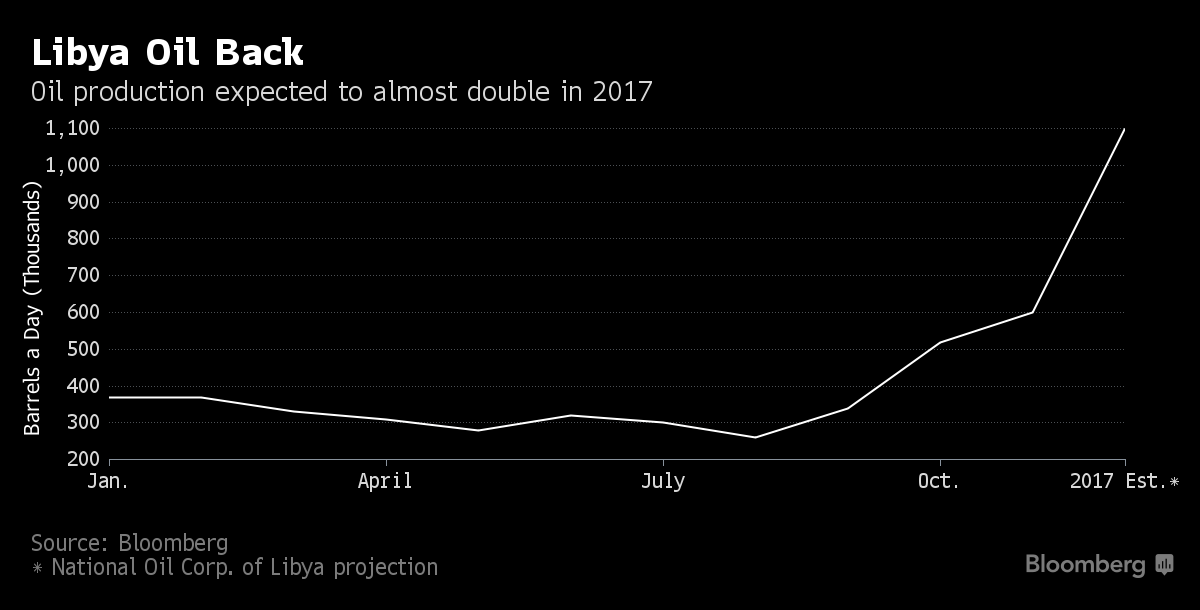 Ливия работает над увеличением добычи и экспорта с момента достижения соглашения с боевиками в сентябре, под контролем которых были важные нефтяные порты. В результате этой сделки страна теперь может поставлять 781k баррелей из порта Рас Лануф. Крупнейший порт страны Эс Сидер может возобновить экспорт в течение нескольких дней.