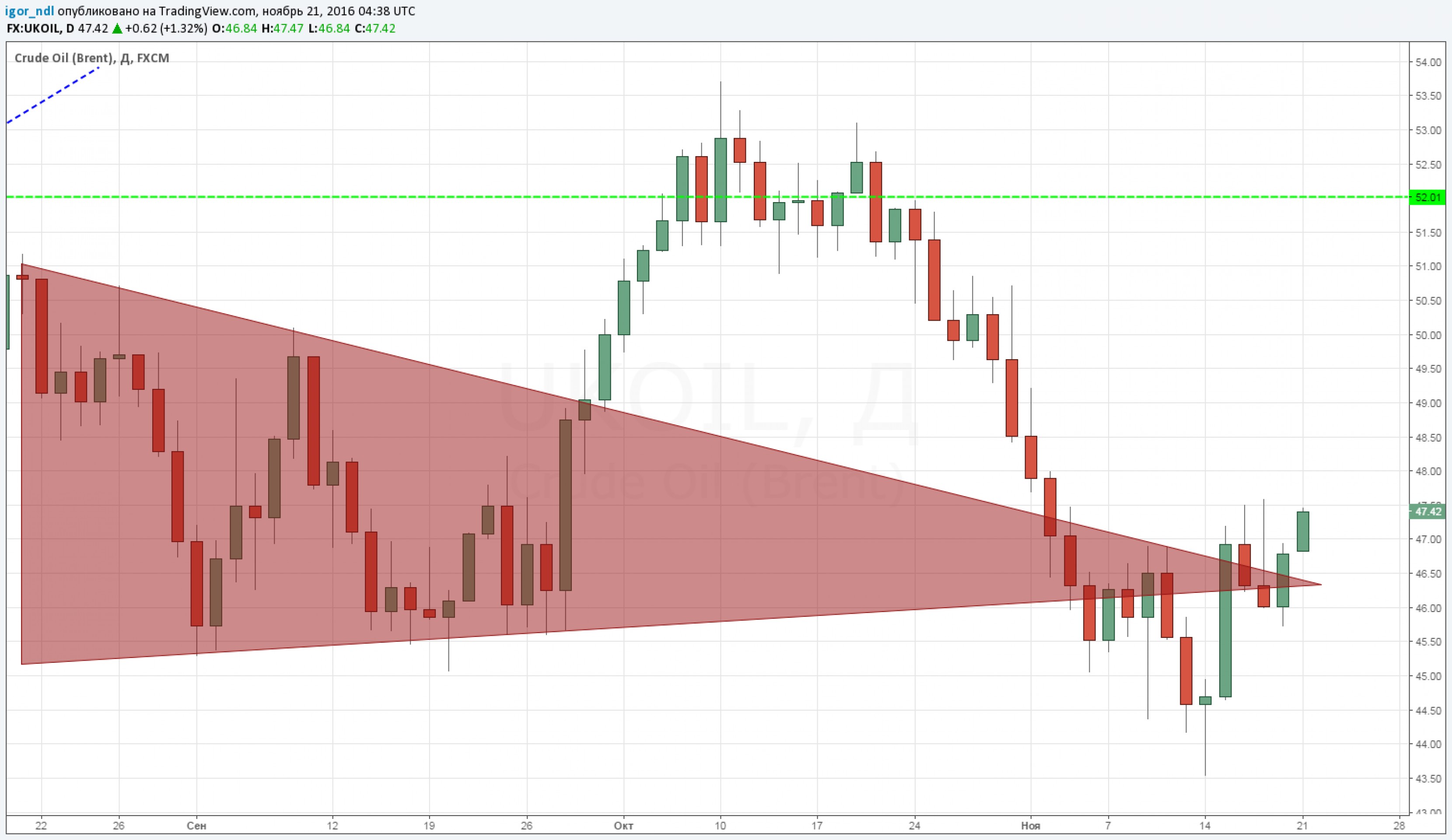 Судя по реакции рынка сегодня, можно сделать вывод, что трейдеры с оптимизмом ждут предстоящей сделки. Фьючерсы на смесь марки Brent сегодня по состоянию на 7:40 по московскому времени прибавляют почти 1,5%, торгуясь на отметке $47,42.