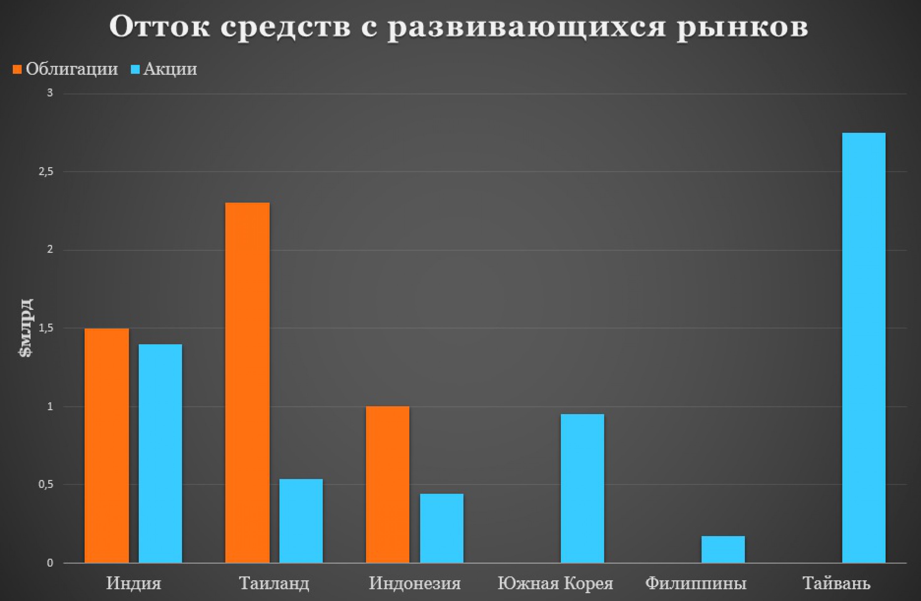 Индия столкнулась с самым большим оттоком средств 9-18 ноября, следом за ней - Таиланд, свидетельствуют расчеты Bloomberg на основе официальных данных.