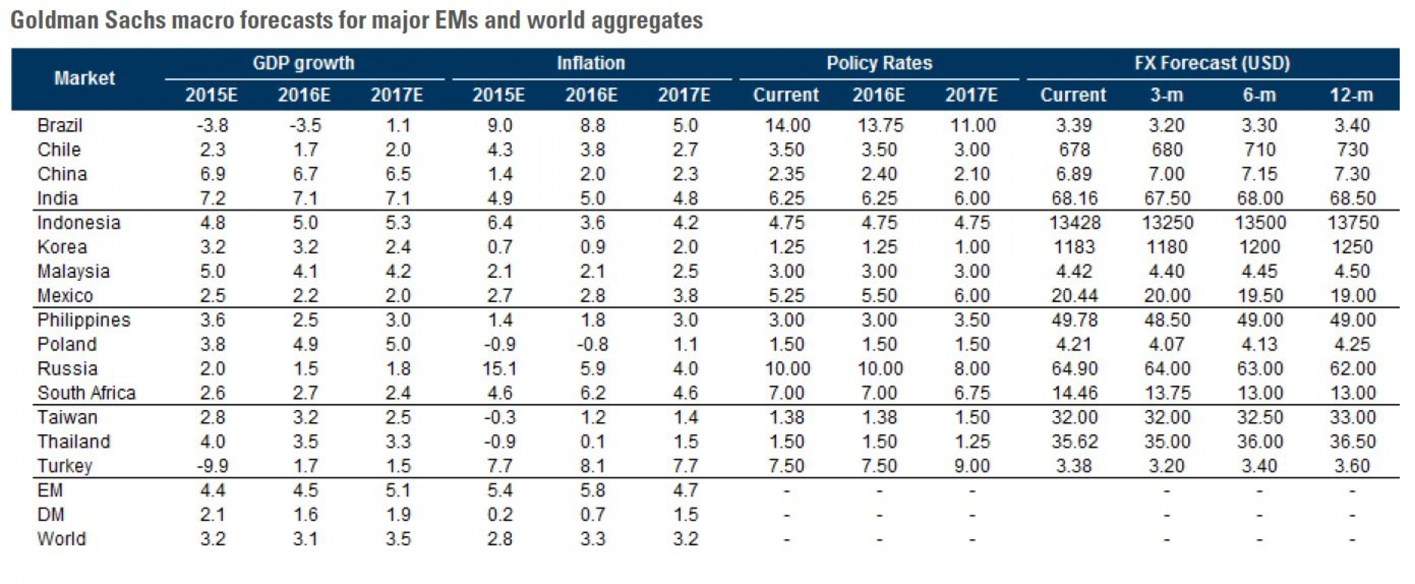 Если не вдаваться в подробности, в более широкой перспективе, как полагают аналитики Goldman, экономический рост и инфляция в подобных странах будут ускоряться. С точки зрения будущего денежно-кредитной политики специалисты из Goldman считают, что большинство центральных банков мира будут снижать ключевую процентную ставку, в то время как американский доллар, который ранее достиг 14-летнего максимума, усилит свои позиции против большинства валют развивающихся рынков.