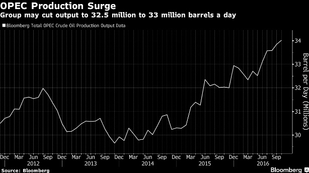 Первоначально одобренное в Алжире в сентябре предложение могло бы привести к сокращению добычи примерно на 1.2 млн. баррелей в день с октябрьских уровней, тем не менее, пока что попросту не ясно, достаточна ли будет поддержка сделки в среду. Эталонная марка Brent снизилась почти на 1.8% до $47.45 за баррель в Лондоне во вторник после касания $48.41 в понедельник. Внутри картеля страны воюют за каждый баррель. ОПЕК пытается преодолеть собственные разногласия, пытаясь также привлечь не входящие в картель страны вроде России к снижению добычи почти на 600k в сутки. Кремль до настоящего момента отклонял предложения по снижению добычи, предлагая вместо этого заморозку на текущих уровнях. Министр энергетики России Новак заявил во вторник о том, что у него нет планов лететь в Вену в среду, однако же он также заявил о готовности России к переговорам с картелем, если страны-участницы смогут договориться хотя бы между собой.