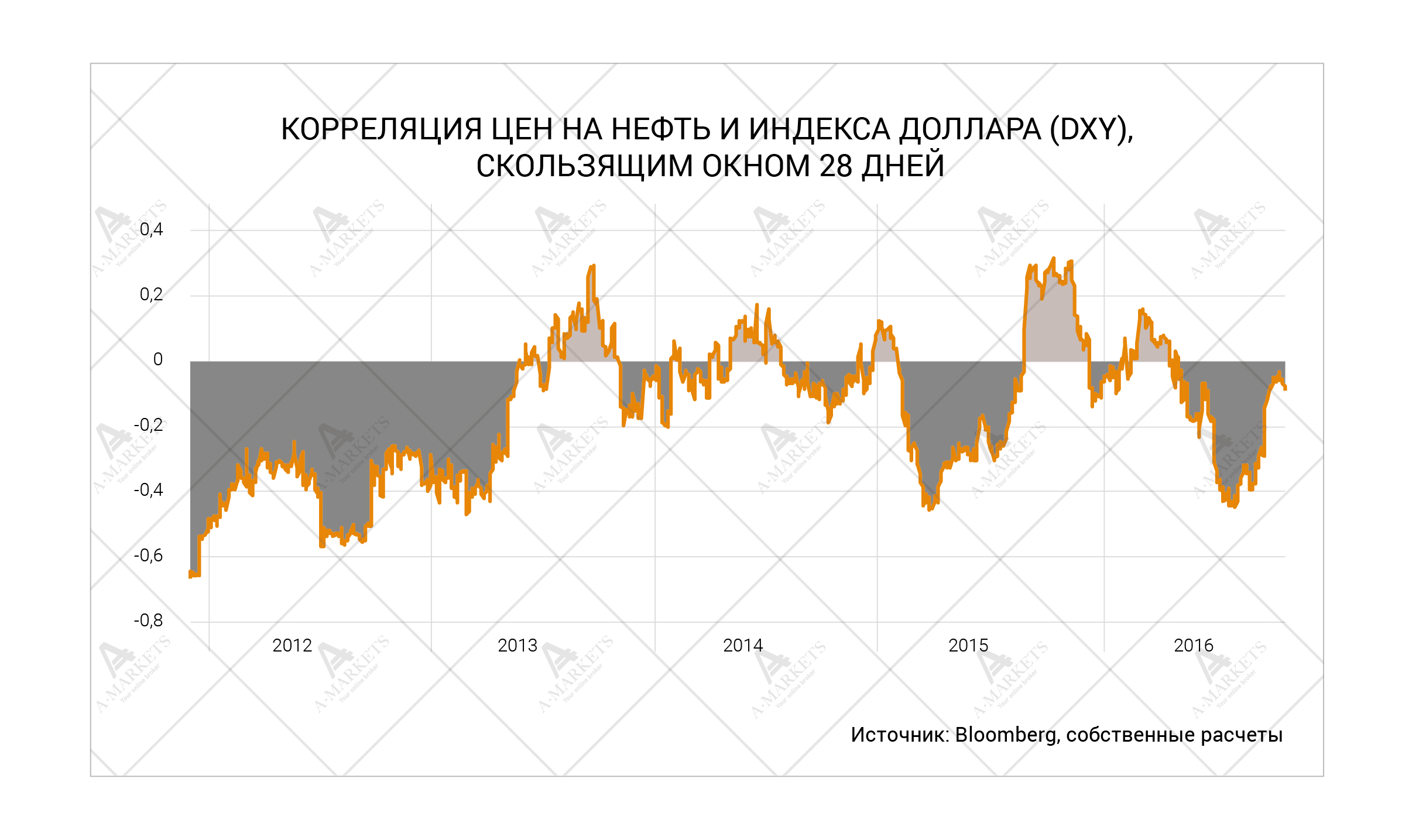 После выборов в США уверенный рост демонстрируют и цены на промышленное сырье. По этому поводу нам часто задают вопрос: разве возможно одновременное укрепление доллара и подорожание нефти? Мы отвечаем — вполне. Во-первых, устойчивость корреляции между этими показателями не так высока, как принято считать. Цена на нефть — это преимущественно функция от конечного спроса, а курс доллара — функция ставок (это особенно хорошо видно в последние два года). В свою очередь, оба показателя зависят от экономического роста. Однако сегодня американская экономика может выиграть от более дорогой нефти, ведь сланцевая отрасль стала важным фактором роста. Это, в свою очередь, ведет к переоценке ожиданий по поводу повышения ставок ФРС, что укрепляет доллар. Такая картинка абсолютно характерна для развивающихся рынков стран – экспортеров нефти.