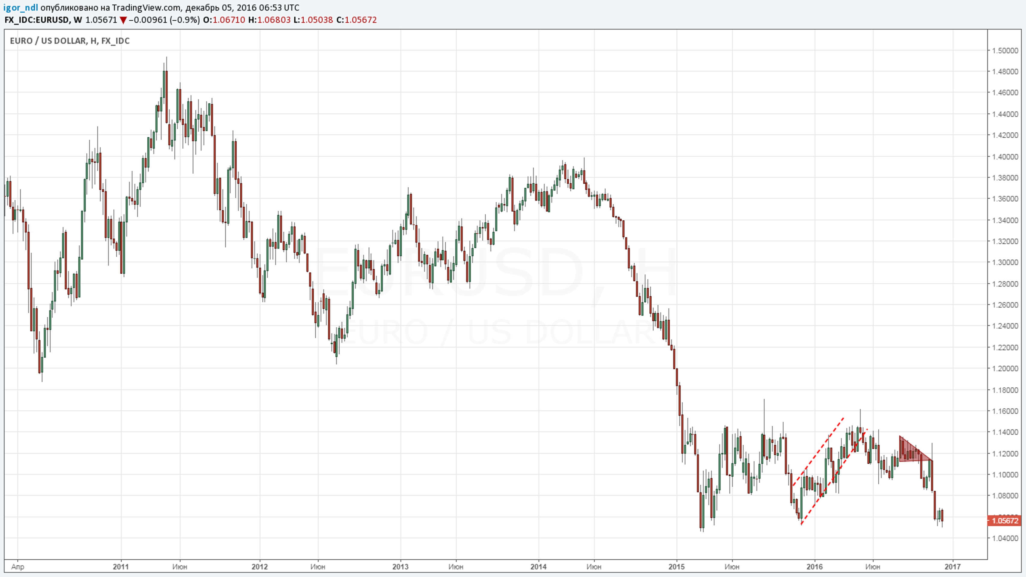 После референдума в Италии, на котором жители проголосовали против конституционной реформы, евро обновил минимумы с марта прошлого года. Премьер Италии Маттео Ренци уже объявил, что уйдет в отставку. В общем, к власти могут вскоре прийти сторонники выхода из еврозоны, и это лишь усилит давление на евро.