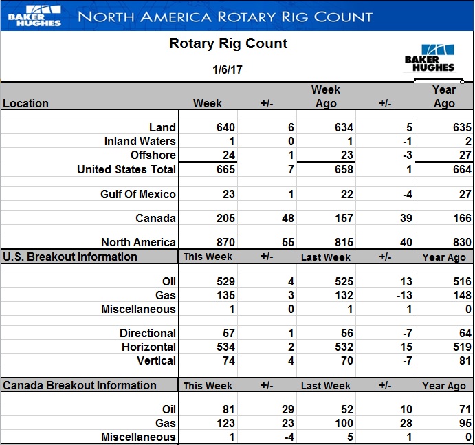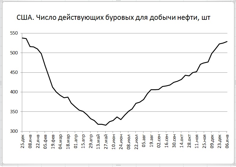 Вышла свежая порция данных от компании Baker Hughes по буровой активности на 6 января.