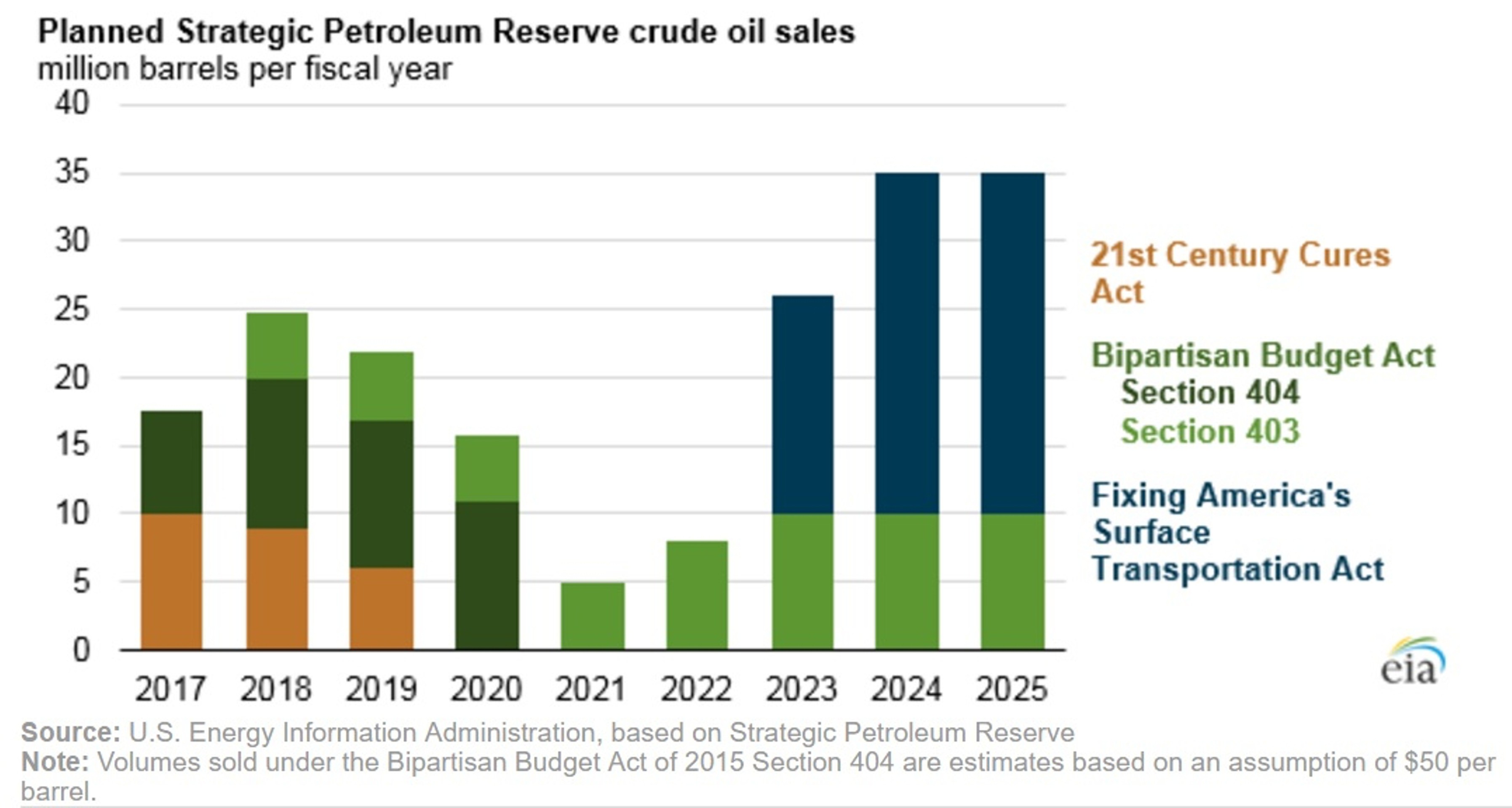 Двухпартийный бюджетный акт, принятый в США в 2015 г., предполагает продажу нефти из резервов в 2017-2020 гг. на сумму $2 млрд.