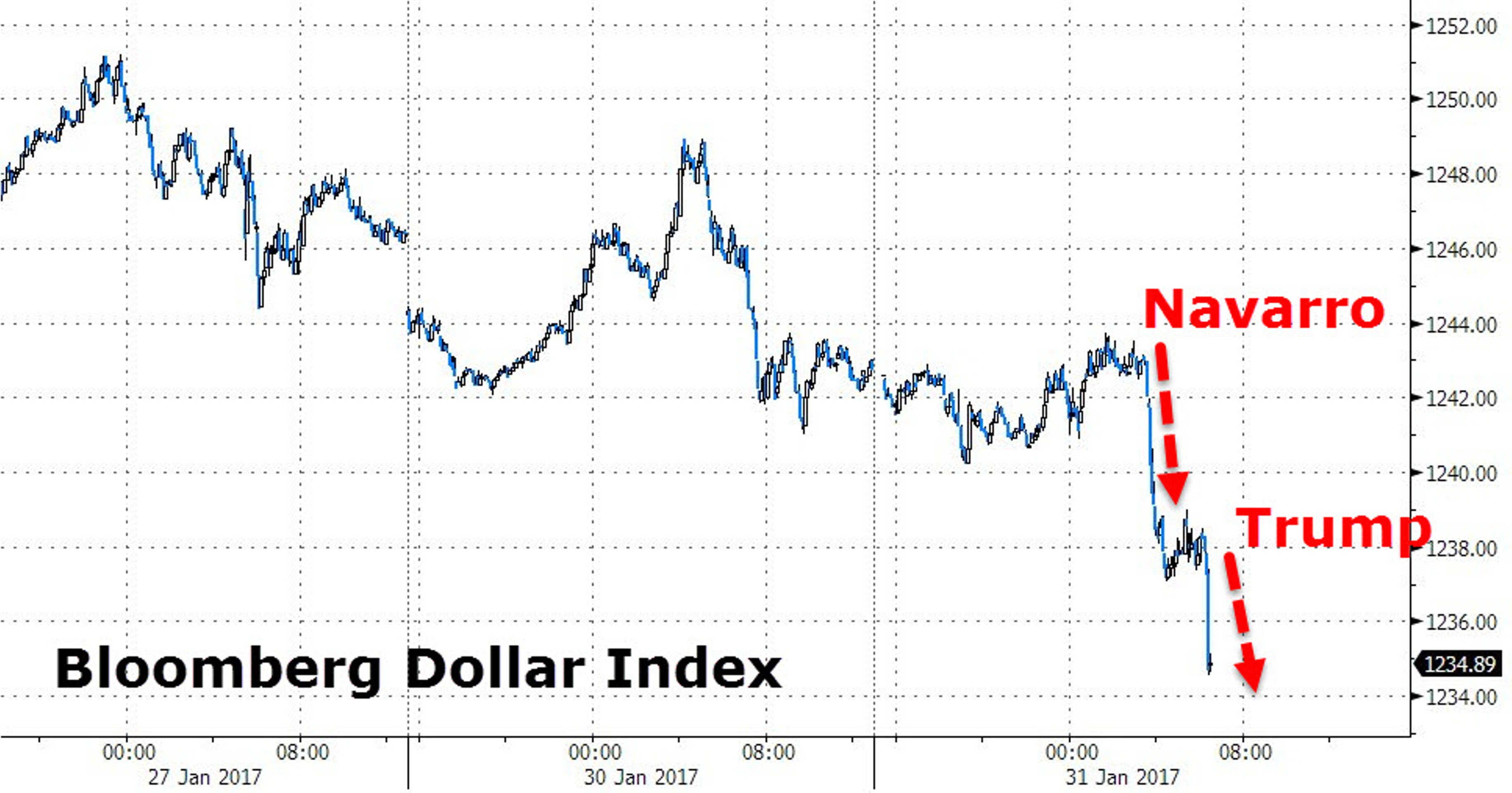 Сразу после этих слов "американец" усилил падение к иене и юаню, а широкий индекс доллара - его рассчитывает Bloomberg - обвалился до минимума с середины ноября, то есть отыграл уже большую часть поствыборного ралли.