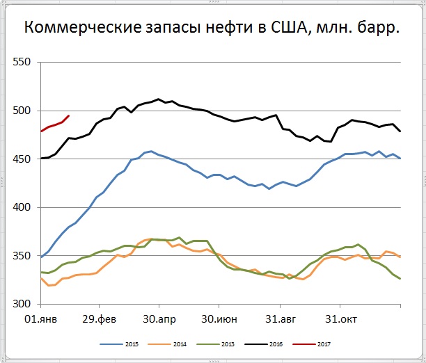 С началом февраля рынок с нетерпением ожидает первых данных добычи по странам ОПЕК+. Вчера со слов министра энергетик Александра Новака стало известно, что Россия по итогам января сократила объем добычи на 117 тыс. баррелей. Министр пообещал, что обязательства России по сокращению добычи будут выполнены досрочно. Напомним, что Россия в формате соглашения ОПЕК+ взяла на себя обязательство в течение 1 квартала 2017 года снизить добычу на 300 тыс. баррелей в день с октябрьских максимумов на уровне 11.23 млн. баррелей в сутки. Глава госкомпании Ирака (SOMO) Фаллах аль-Амри nj;t заявил в среду, что Ирак в январе сократила добычу на 0,18 mb/d. (В соответствии с внутренним соглашением ОПЕК от 30 ноября Ирак должен снизить добычу на 0,210 mb/d). Ждем известий и от других участников договоренностей по сокращению добычи.
