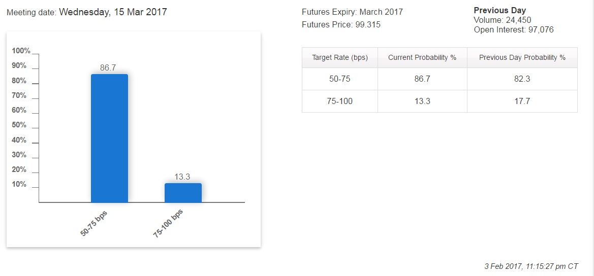 А прошедшее 1 февраля заседание Комитета по открытым рынкам ФРС США ожидаемо сохранило ставку на прежнем уровне. Скупая риторика сопроводительного заявления ФРС не дает оснований ожидать, что повышение ставки состоится уже в ближайшее время. Теперь члены комитета могут начать исправлять складывающиеся у рынка впечатления ястребиными заявлениями. А они вместе с планами по внедрению жизнь фискальных стимулов Трампа могут изменить ожидания рынка и привести к росту доллара. Так что на рынках валютных пар вновь разворачивается интересная интрига.