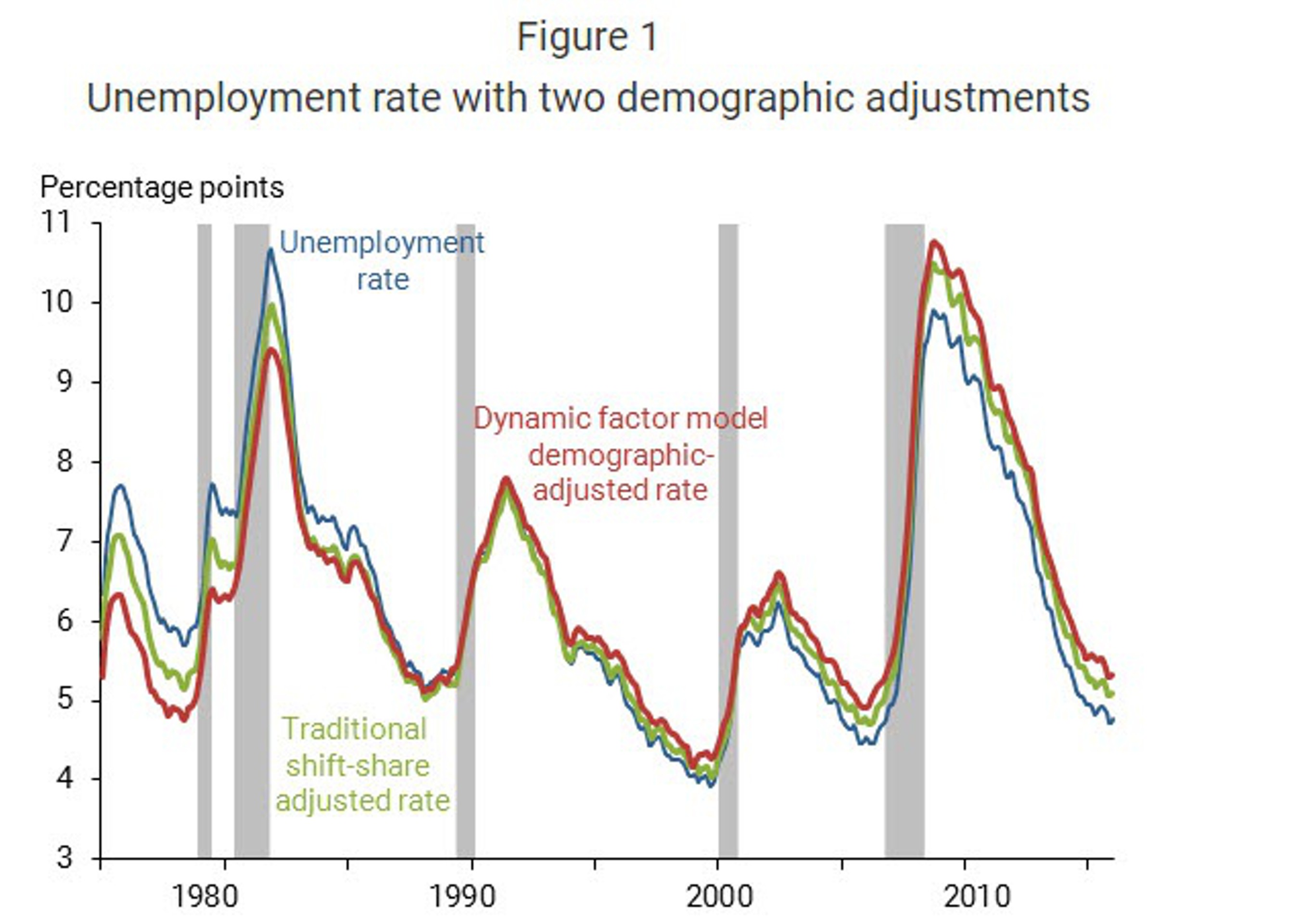Исследователи из ФРБ Сан-Франциско задаются вопросом: действительно ли так силен рынок труда США? В исследовании они применяют новый метод, позволяющий изолировать влияние демографических факторов на рынок труда, в результате чего они приходят к выводу, что демографический уровень безработицы по-прежнему находится на 0,3-0,4 процентного пункта выше, чем это было на прошлых пиках рынка труда.