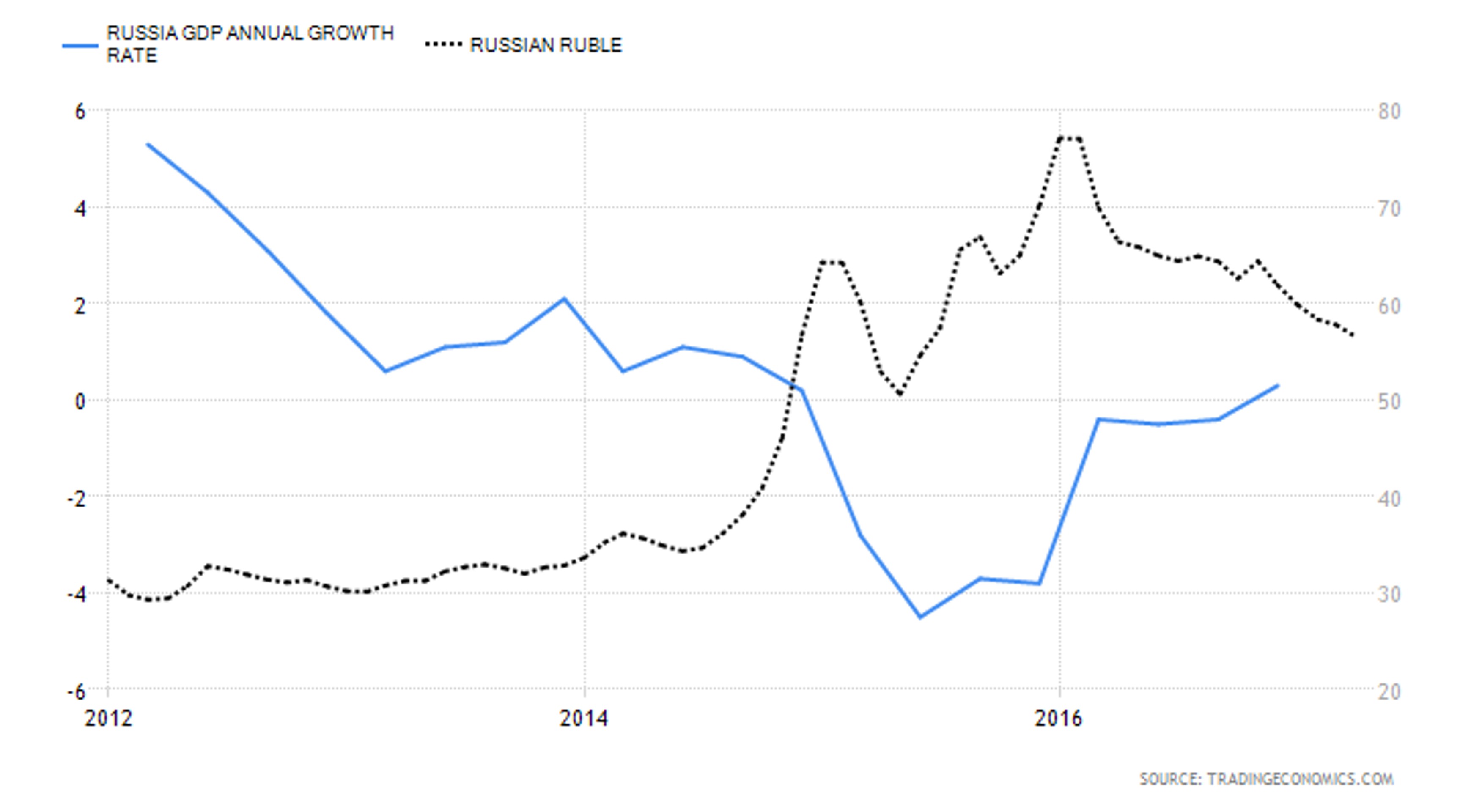Впрочем, поскольку сейчас на долю нефтегазового сектора снова приходится 50% бюджетных доходов, более слабый курс рубля действительно выглядит предпочтительнее. Сам по себе курс рубля не показателен, его нужно рассматривать в привязке к ценам на нефть. Для сравнения, в IV квартале прошлого года российская экономика продемонстрировала скачок и выросла на 0,3%.