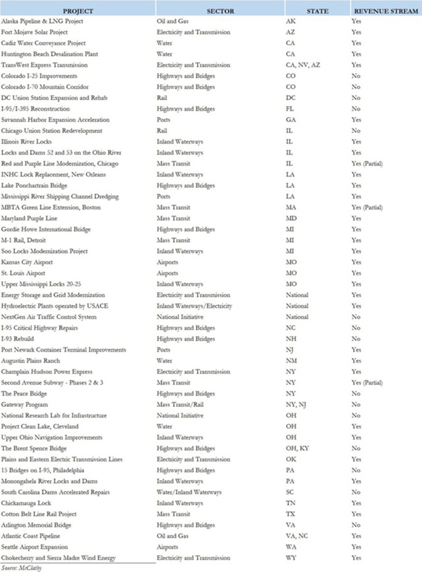 50 возможных приоритетных инфраструктурных проектов