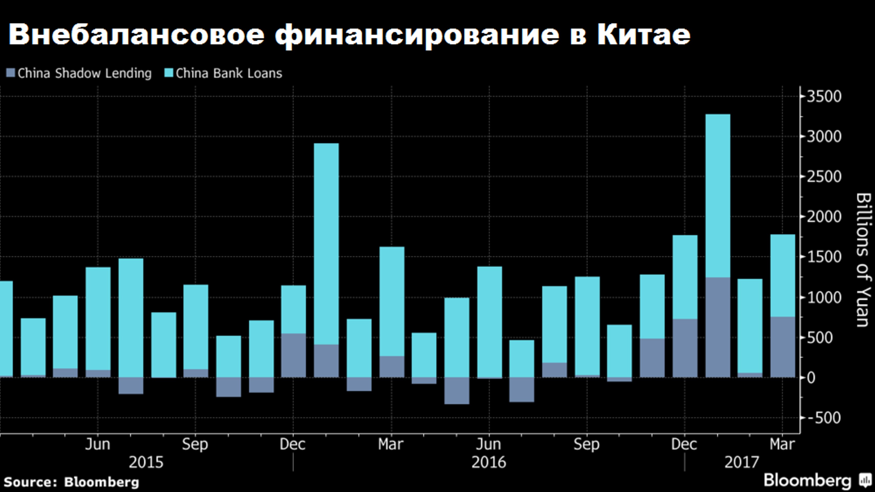 Данные Народного банка Китая показывают, что в марте внебалансовое кредитование выросло на 754 млрд юаней, общий рост показателей за I квартал достиг рекордных 2,05 трлн юаней.