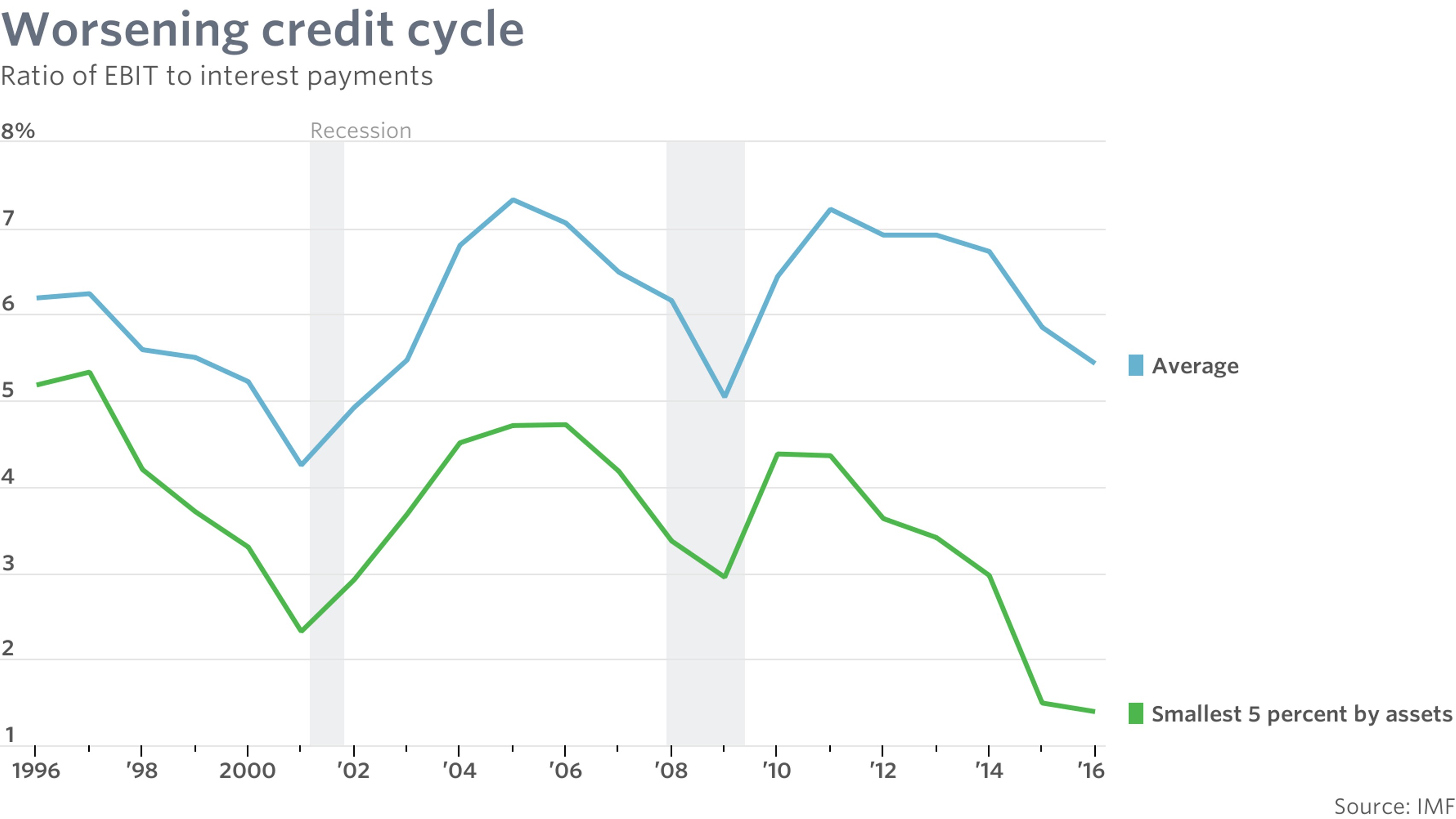 И прибыль снизилась менее чем в шесть раз от процентных расходов. Компании, несущие ответственность за 10% корпоративных активов, не в состоянии позволить себе процентные расходы из текущих доходов.