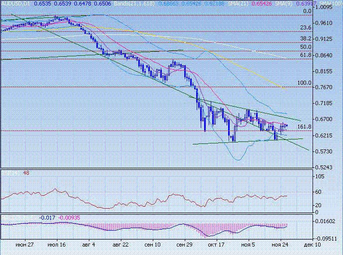 Консолидация в районе 0,6360/30 продолжилась. Пара удерживается в середине полосы Боллинжера, ситуация нейтральна, вероятно пара формирует основание. Торговля ведется в сужающемся треугольнике – модели продолжения, в случае прорыва 0,6000 аусси продолжил снижаться в среднесрочной перспективе. В случае, если треугольник будет прорван наверх аусси удастся восстановиться. Активность игроков остается низкой. Аусси предпринимает попытки закрепиться по 0,6330, в случае успеха он вырастет к 0,6560/0,6660.