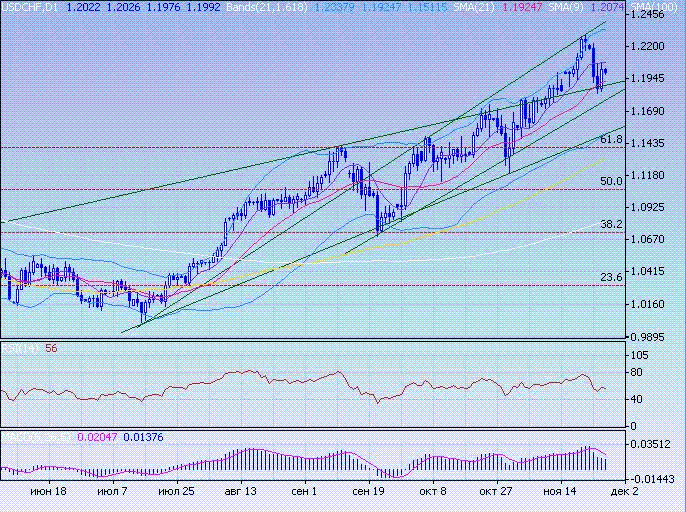 В текущую сессию ожидаем роста свисси. Цель: 1,1895, после прорыва 1,1795