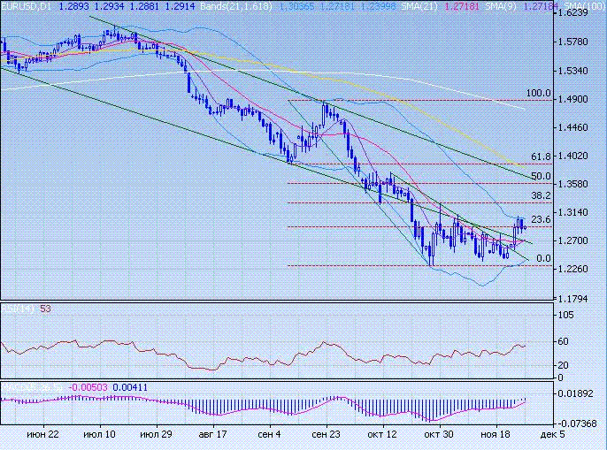 1,2710 – пересечение 9 МА и 21 МА, поддержка среднесрочного канала