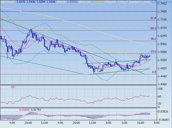 В текущую сессию ожидаем роста стерлинга. Цель: 1,5520, после прорыва 1,5750