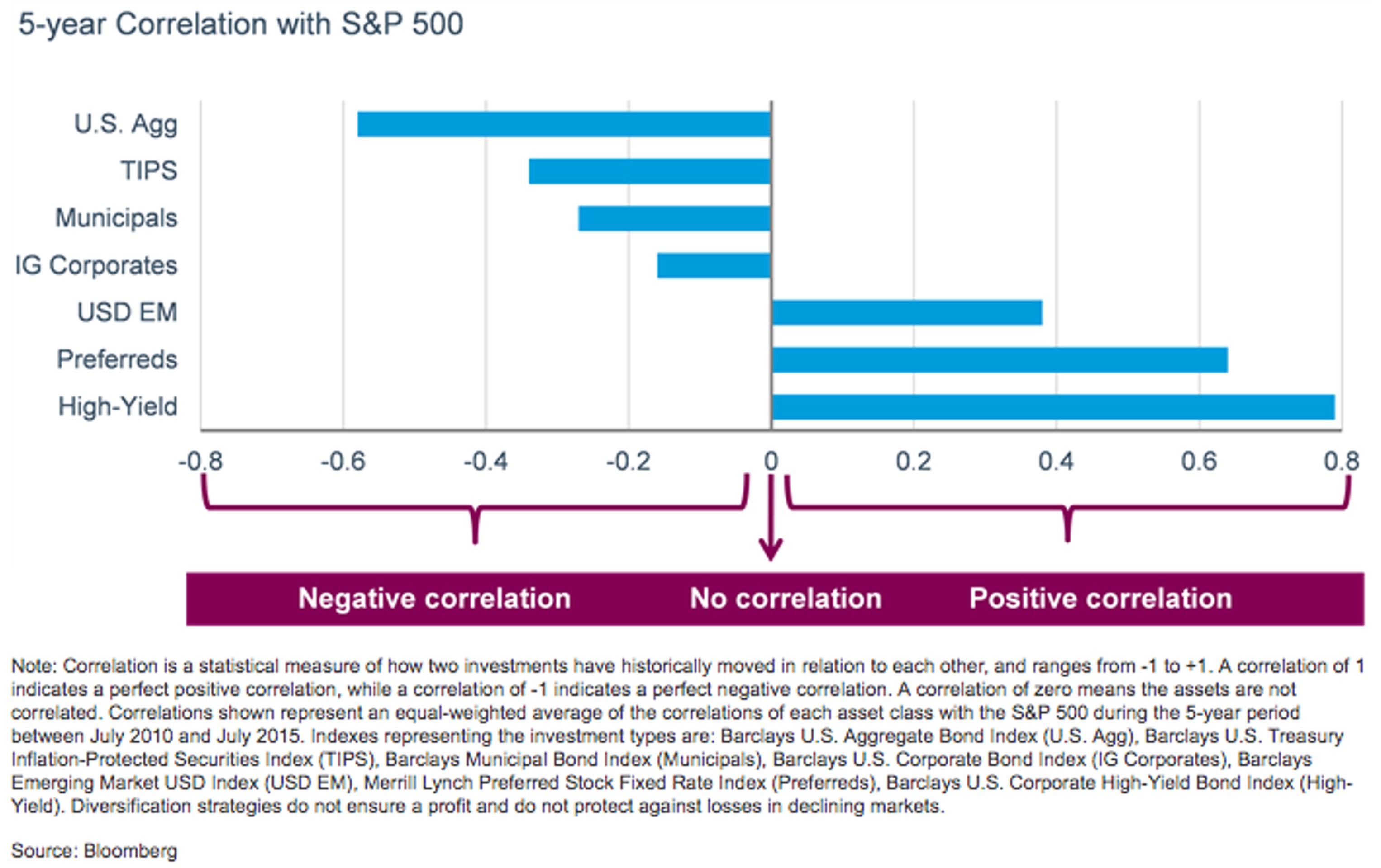 Облигации с низким кредитным качеством, такие как облигации с высокой доходностью и облигации развивающихся рынков, как правило, имеют положительную корреляцию с акциями.