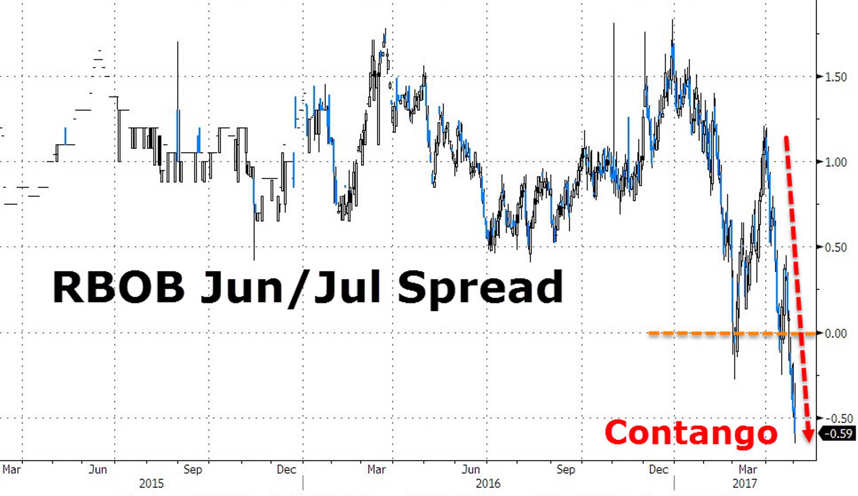 Кстати, любопытная картина вчера наблюдалась в США и на рынке бензина. Июньские контракты торговались к июльским с самой большой скидкой.