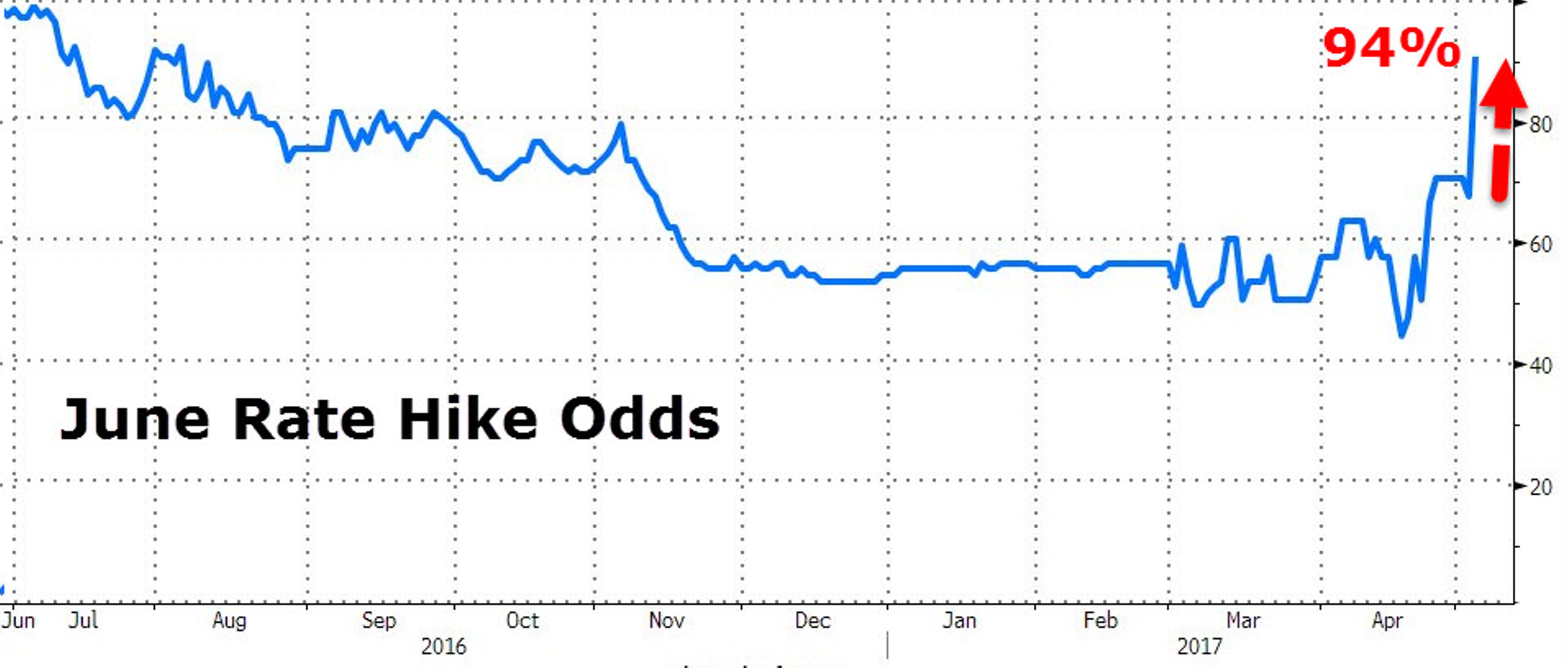 Как бы то ни было, трейдеры практически уверены в еще одном повышении ставки на ближайшем заседании. Фьючерсы, отражающие вероятность такого развития событий, сейчас оценивают эту вероятность в 94%.