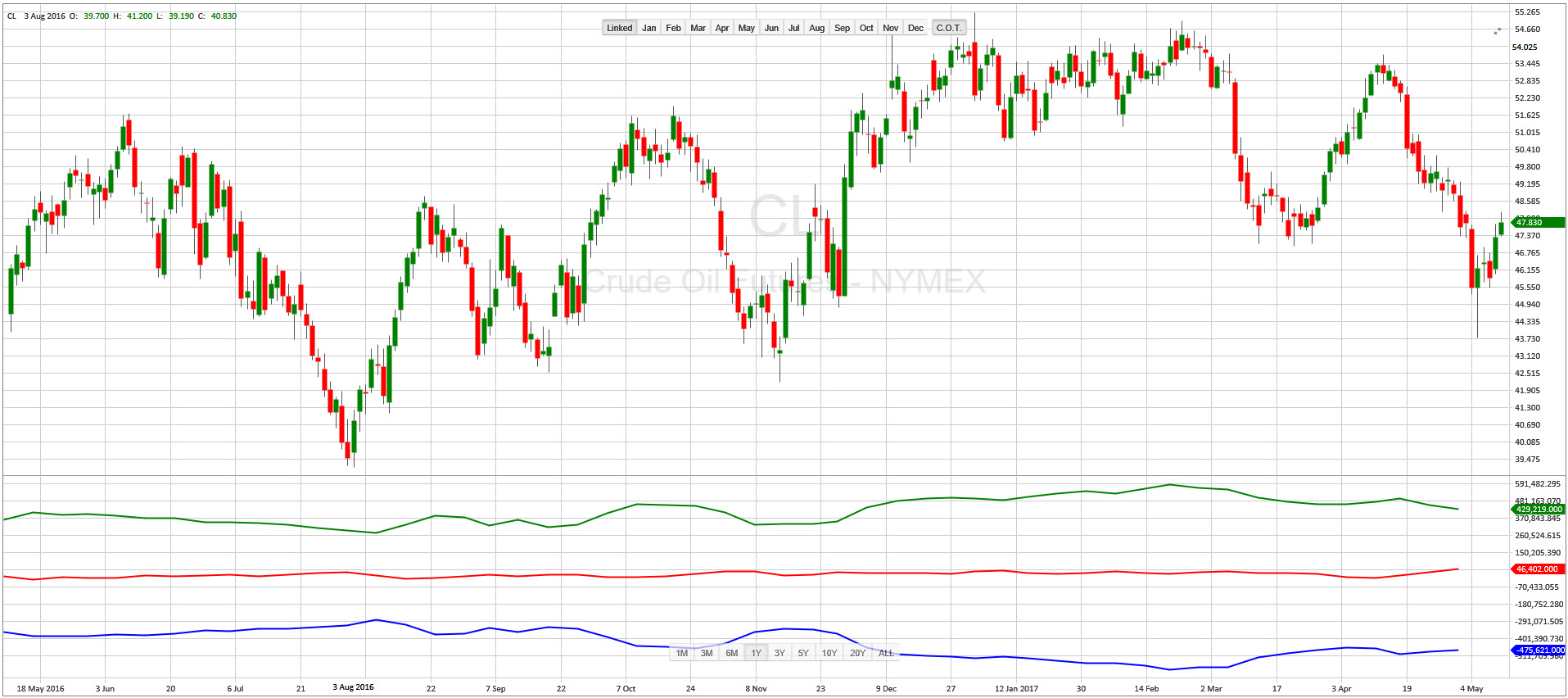 Рис.2: Совокупные позиции участников торгов на рынке нефти. Источник CFTC