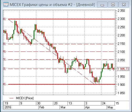 Индекс ММВБ продолжает оставаться в боковой консолидации вблизи уровней около 2000 пунктов. Подрастание фондового рынка в сегодняшних условиях роста нефтяных цен вполне могло бы и продолжиться. Однако развитию ставятся преграды. Главным фактором неопределенности для рынка остается размытая позиций государства по поводу выплат дивидендов. Основная дивидендная интрига обещает разрешиться 16 мая после заседания СД Газпрома. С учетом структуры акционеров компании окончательное решение будет приниматься государством. Пока члены правительства по этому вопросу упорно создавали туман неопределенности. И вот в понедельник президент Путин разочаровал: «По МСФО у такой компании как Газпром большая прибыль. Но она бумажная. Она на бумаге. Реального денежного потока нет. Поэтому когда правительство будет принимать решение по этому вопросу, оно, безусловно, будет учитывать реалии, а не бумажную составляющую доходов компании. Исходя именно из этого, и будет принято окончательное решение».