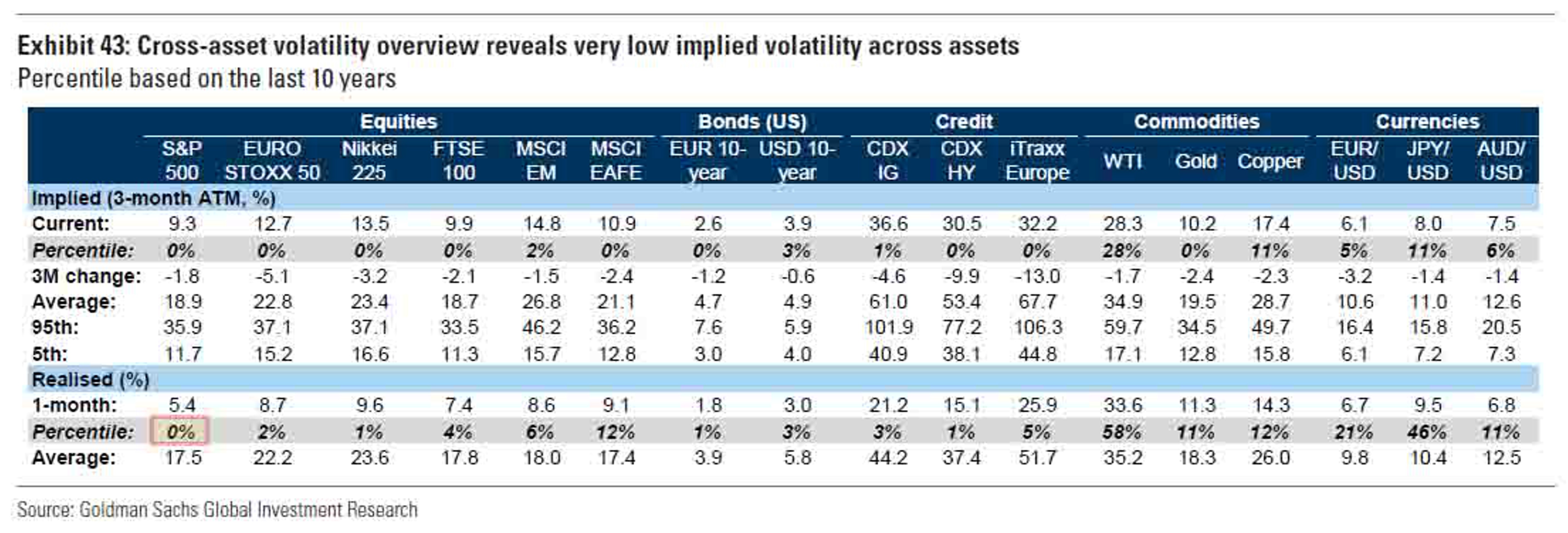 Кристиан Глиссман, стратег Goldman, присоединяется к общей тенденции и пишет, что, хотя "периоды низкой волатильности не должны заканчиваться плачевно, но часто именно так и происходит".