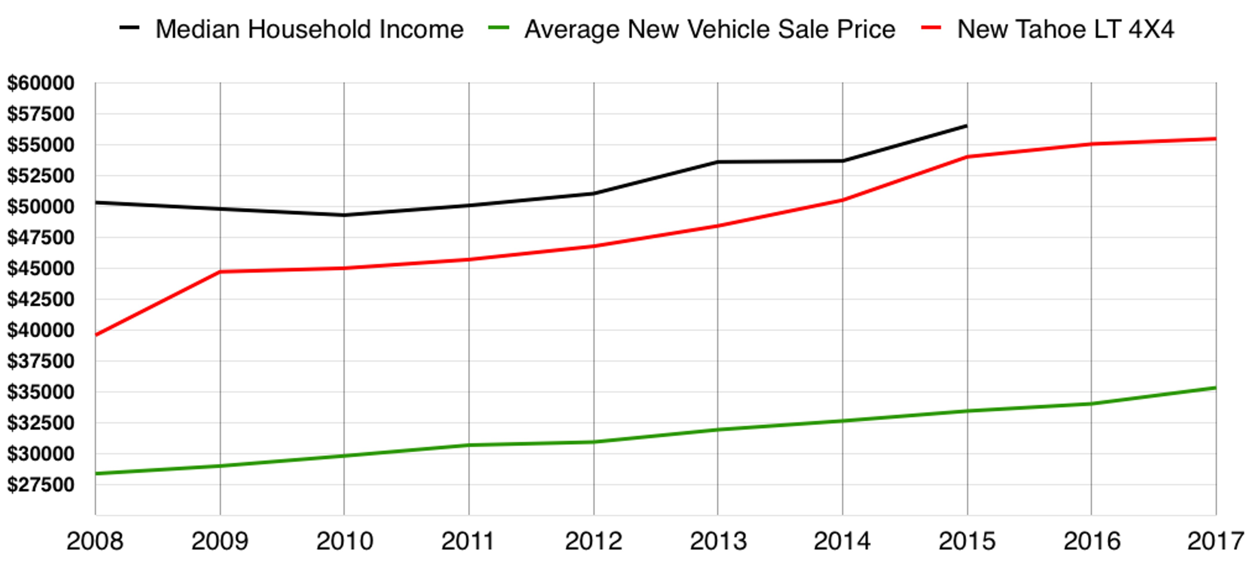 Стимулирующие эффекты всех вышеперечисленных элементов привели к значительной инфляции цен на авто. Средняя цена сделки с новым транспортным средством в 2008 г. составила $28,350 тыс. и увеличилась до $35,309 тыс. в 2017 г. (инфляция в 24,5%), а средний доход домохозяйств вырос лишь на 12,3% по состоянию на 2015 г.
