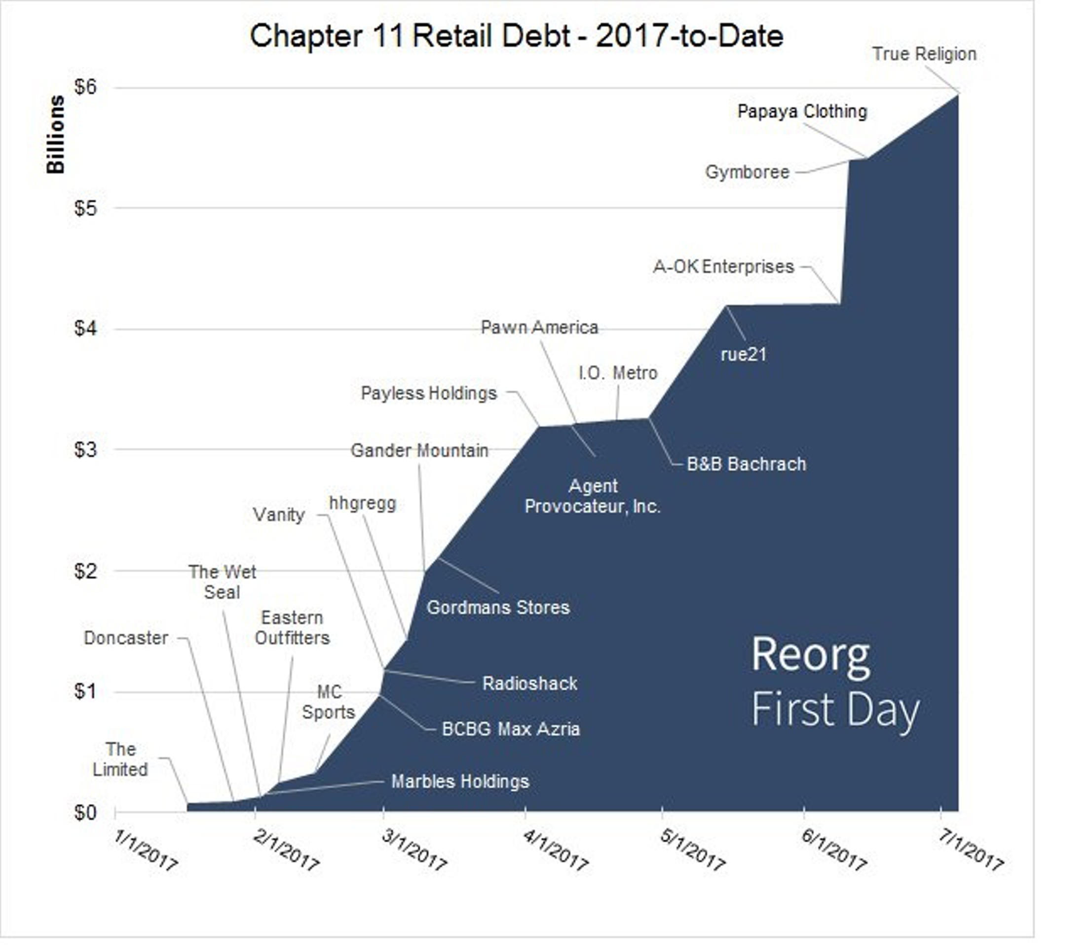 Общий долг розничных компаний, обанкротившихся в первом полугодии, оценивается в $6 млрд.