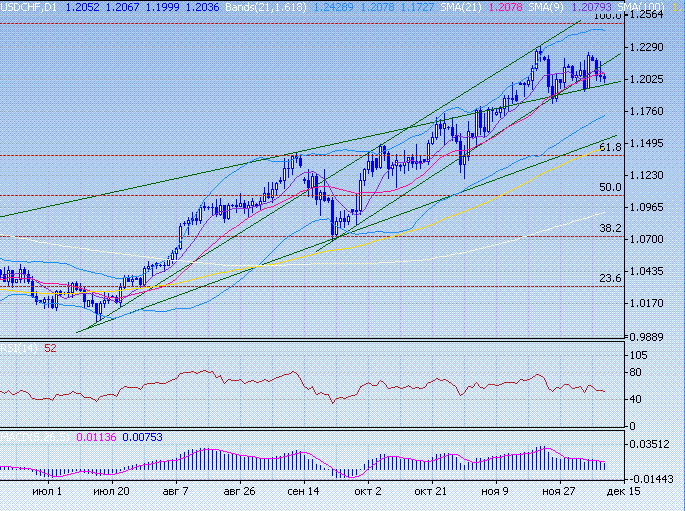 Свисси подрос, поддержку оказывает повышательная линия поддержки на 1,1995/85, прорыв которой обозначит рост свисси в район 1,1835. Дополнительный импульс росту свисси придает пересечение 9 МА и 21 МА в сторону его роста. В тоже время, перепроданность краткосрочных индикаторов RSI оказывает на свисси давление, что может привести к восстановлению доллара. Значимая поддержка проходит по 1,1963. Сильное сопротивление расположено на 1,2220.