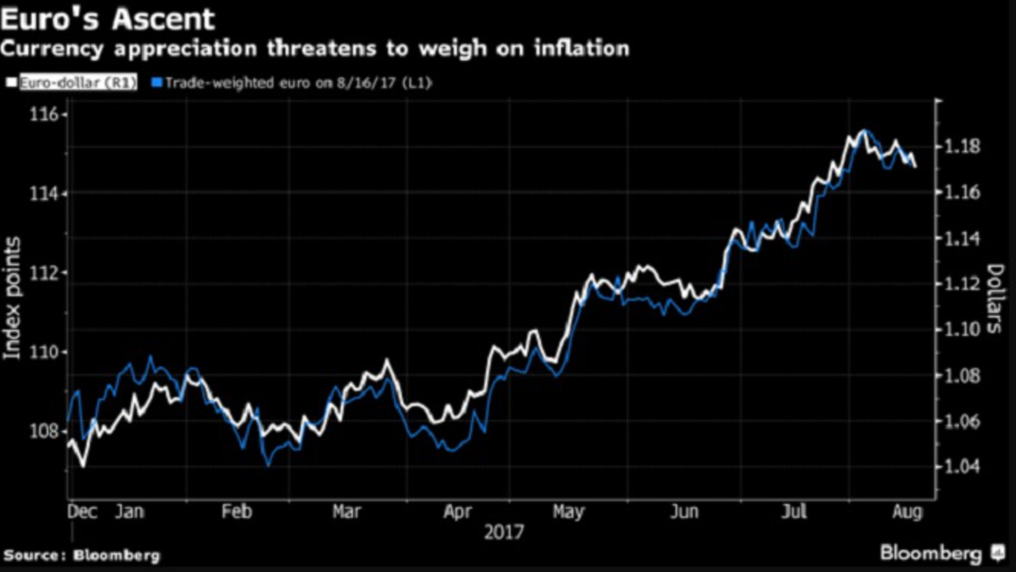 Согласно последним данным Eurostat в июле инфляция в еврозоне составила 1,3% по сравнению с аналогичным периодом 2016 г. А это идет вразрез с планами ЕЦБ, который рассчитывает на достижение целевого уровня 2%.