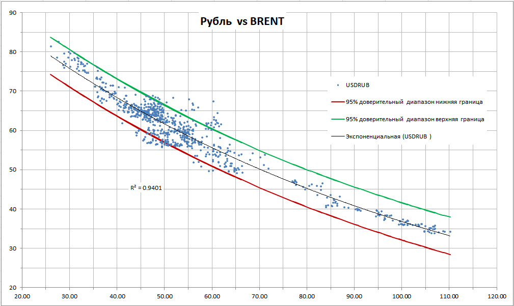 рис.1:Зависимость рубля от стоимости нефти марки Brent