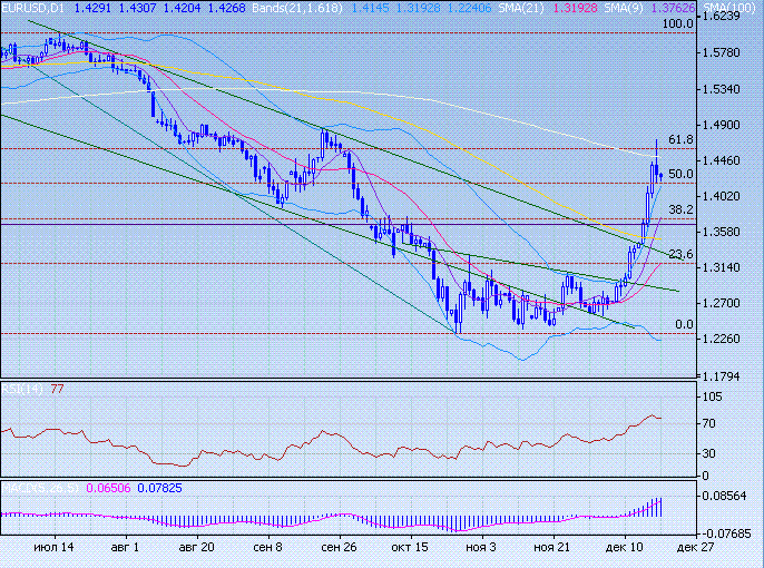 1,4180 – 50,0% Фибоначчи (1,6033-1,2329), верхн Боллинжер