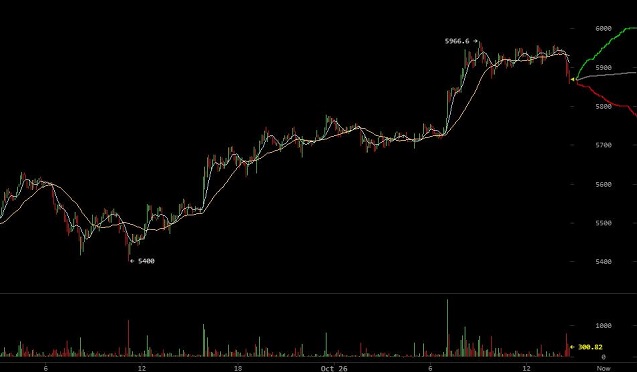 После установления нового исторического максимума около $6.200 на прошлой неделе, криптовалюта сталкивалась со сложностями в восстановлении импульса роста. Биткоин получил краткосрочную поддержку от трейдеров в связи с хард форком Bitcoin Gold, после которого аналогичное количеству биткоинов число монет появилось уже на счете Bitcoin Gold после того, как был намайнен блок 491,407 во вторник утром. Сразу же после форка стоимость биткоина начала падать, и в какой-то момент она просела ниже $5,400, так как трейдеры возвратились к рынку альткоинов, чья рыночная капитализация падала в течение октября.