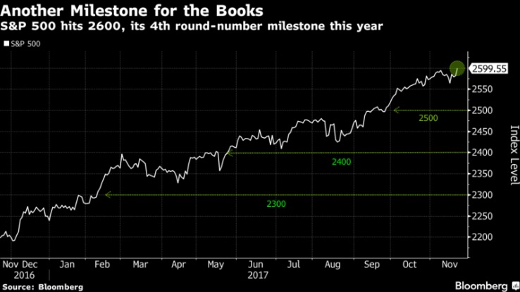 Протокол октябрьского заседания ЕЦБ выйдет в четверг, и он может показать несогласие среди чиновников в отношении сворачивания. Протокол последнего заседания ФРС выйдет в среду. Британия опубликует в среду свой бюджет. Индекс S&P 500 вырос на 0.65%, закрывшись на 2,599.03. Индекс Stoxx Europe 600 вырос на 0.4%. Британский FTSE 100 вырос на 0.3%. Немецкий DAX подскочил на 0.8%. Индекс развивающихся рынков MSCI вырос на 1.3% до максимума более чем за 6 лет.