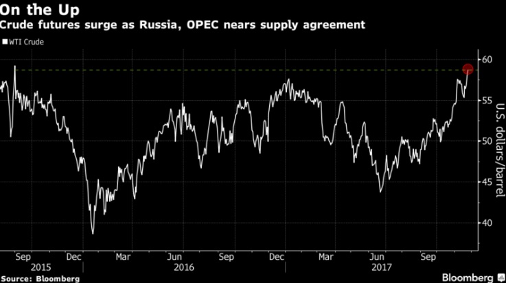 Железная руда выросла до максимума за 2 месяца, тогда как промышленные металлы устремились к лучшему недельному росту из последних 6. Сырая нефть росла, так как Россия и ОПЕК заявили об общей основе для продления сделки. Крупнейшая немецкая оппозиционная партия заявила об открытии переговоров с партией Меркель. Индекс S&P 500 вырос на 0.21% по состоянию на 10:37 в Нью-Йорке. Индекс Stoxx Europe 600 снизился на 0.1%. Британский FTSE 100 снизился на 0.1%. Немецкий DAX подскочил на 0.4%. Индекс развивающихся рынков MSCI вырос на 0.1%.