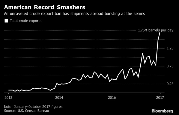 Крупнейший в мире потребитель нефти экспортировал углеводородов больше, чем когда-либо в 2017 году, и пока признаков замедления этого роста нет. Сырая нефть, бензин, дизель, пропан и даже сжиженный природный газ – все эти ресурсы поставляются за границу в рекордных объемах. В то время как рост происходит уже после многих лет после начала сланцевого бума, его можно отследить прямо до момента начала роста объемов добычи посредством горизонтального бурения. Американский экспорт будет расти и дальше, опасения в отношении пиковых объемов поставок ушли, но появилась новая угроза – электромобили.