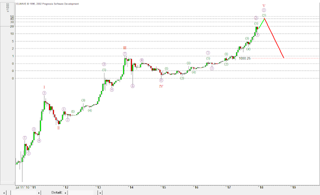 Многие интересуются, на сколько еще вырастет биткойн и когда он рухнет? Последний откат биткойна с 20000 до 11000 дол., на мой взгляд, лишь коррекция в рамках 4-й волны в последней 5-й волне роста. Это значит в ближайший квартал нас ждет финальный вынос наверх в район 25000-30000 дол. - это будет 5-я волна в 5-й. Затем "финита ля комедия", курс щиткойна рухнет за 3-6 месяцев на 90-95% от своего пика, т.е. до1000-2000 дол. А некоторые криптовалюты просто обнулятся. Цирк, как говорится, уедет, а клоуны останутся.