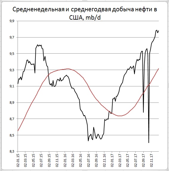 А пока в очередной раз отметим, что добыча в США в последние полтора года компенсировала мировой прирост спроса, который, как известно прирастает в год около 1 мб/д.