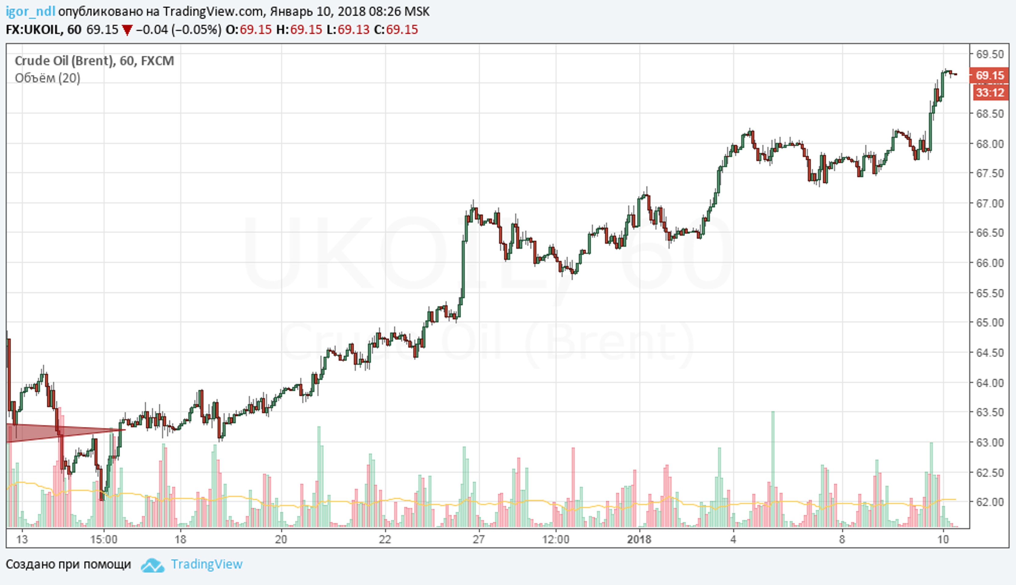 Тогда котировки на текущих уровнях продержались совсем недолго, буквально в течение одной недели. До этого отметка $69 была зафиксирована в конце 2014 г., когда цены еще только падали.
