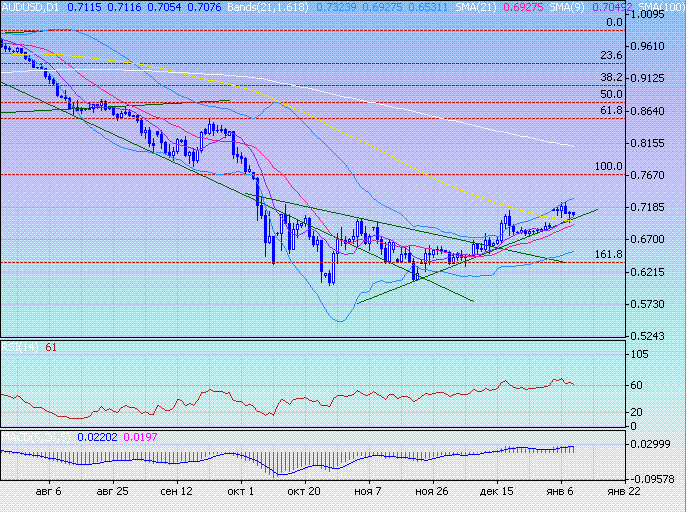 В текущую сессию ожидаем слабого роста аусси. Цель: 0,7140/0,7220