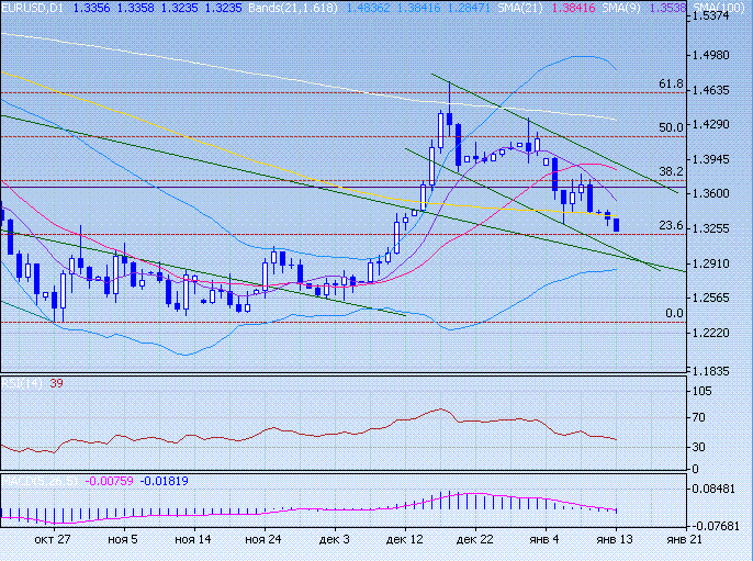 Падение евро остановила 23,6% Фибоначчи на 1,3190. В текущую сессию значительных ценовых движений не ожидаем, рынок будет ожидать решения ЕЦБ по ставкам и комментариев Трише. Прорыв 1,3190 вниз приведет к тестированию важных отметок на 1,3050-20. Ключевой поддержкой является 1,2970, ее прорыв приведет к тестированию минимумов конца 2008г. Напомним, пара вероятно формирует вторую волну новой фазы восходящего движения.