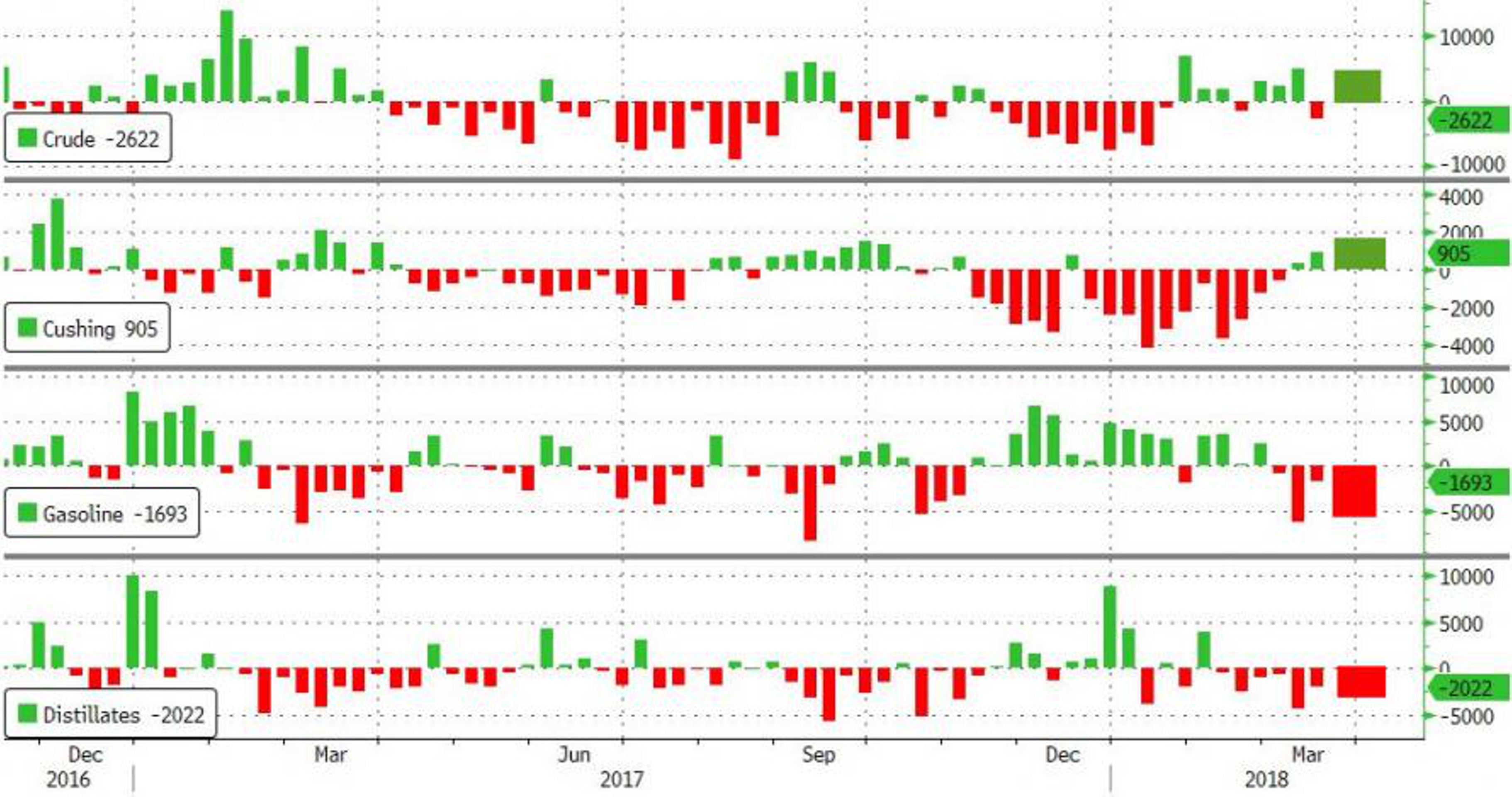 По данным Американского института нефти (API), за неделю коммерческие запасы сырья в стране подскочили более чем на 5 млн баррелей. Запасы нефти в хранилище в Кушинге подскочили на 1,65 млн баррелей.