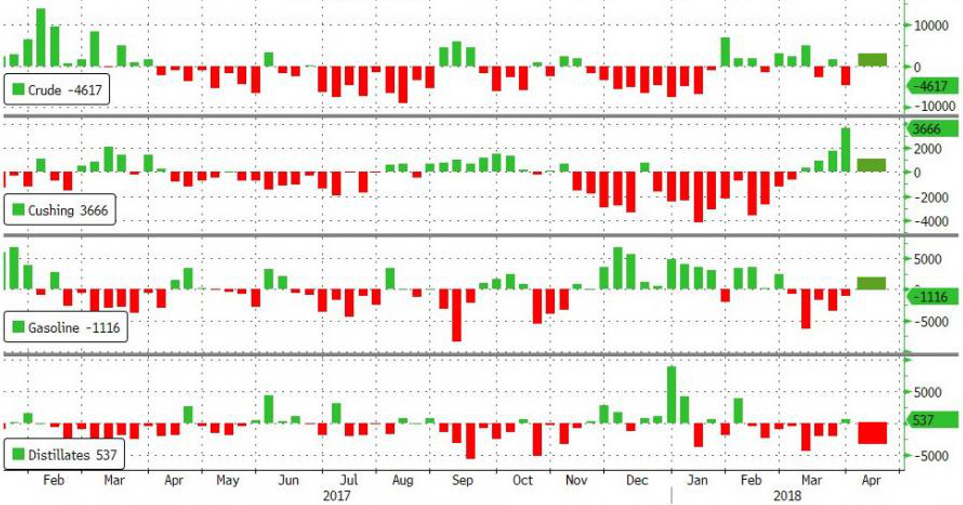 Запасы нефти и бензина за неделю неожиданно выросли - на 1,8 млн и 2 млн баррелей соответственно.