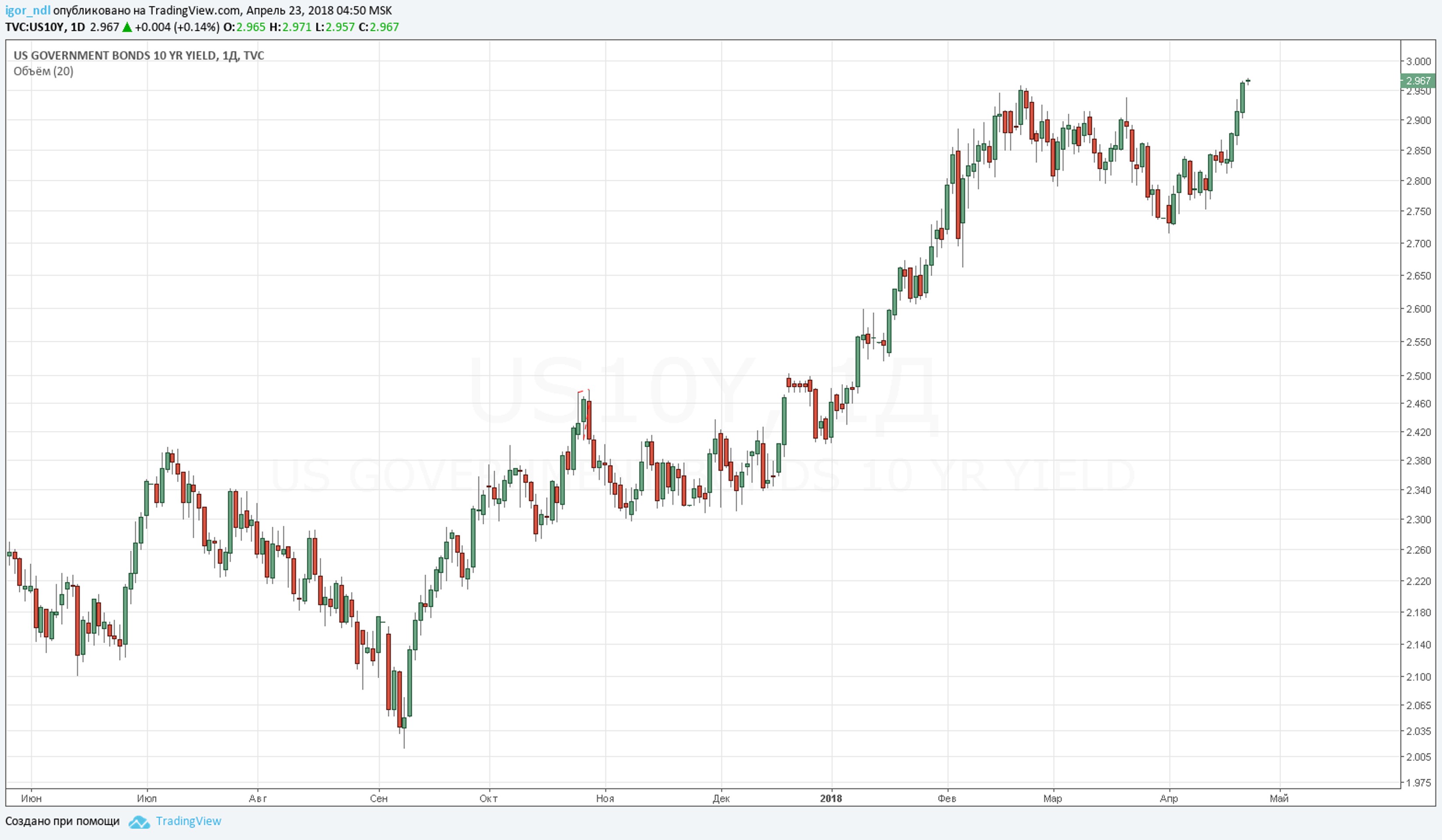 23 апреля 2018 Вести Экономика | 10 Year Note (TNX)