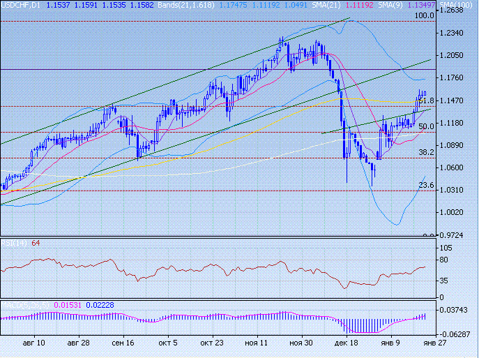 В текущую сессию ожидаем слабого роста свисси. Цель: 1,1495